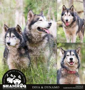 Many of you will remember this pair from our desperate calls for foster care for them as their euthanasia date approached at a regional pound. Were it not for the last-minute offer of temporary care from Brad & Megan, Diva & Dynamo's story would have sadly ended then and there. Thankfully, we got them to safety and set to searching for a foster home that could take them longer-term. It was around this time that Sean & Lisa approached us to enquire about fostering. They had put their names on a waiting list with a registered Malamute breeder, who was planning a long-awaited litter at the end of the year. They thought that they could fill in some waiting time by fostering and therefore preparing themselves for what was to come. A pair of senior Mals seemed like a safe way to dabble their toes in Mally ownership. Luckily, the registered breeder is a staunch supporter of the work we do, as she received an email recently from Sean & Lisa to say that they would no longer be able to take a pup from the upcoming planned litter. Diva & Dynamo had made themselves so much at home that Sean & Lisa couldn't imagine them leaving. So with much joy, we announce that our beautiful brother and sister duo are home for good, where they have their new Mum & Dad wrapped around their little (?) paws.