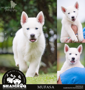 ABOUT ME: Yo, it’s me, Moofy here. I am one half of the white bash brother duo. As my name suggests, I am majestic and amazing, if not a little egotistical. But with these baby blues, wouldn’t you be? I am mastering the technique of hypnotizing you with my vibrant eyes in order to wrap you around my not so little paw. I have always been one of the biggest in the group and am never going to be a small guy. My blocky head suggests that. But otherwise I am fairly adaptable and likely to settle into most family situations. THE GENERAL INFORMATION: We know the first thing you thought was “OMGEEEEEEEE PPPUUUUPPPIIEEEESSSS”. And yes, that is a completely normal reaction. But we are true Huskies in all senses of the word and will require the standard Husky-suitable homes.